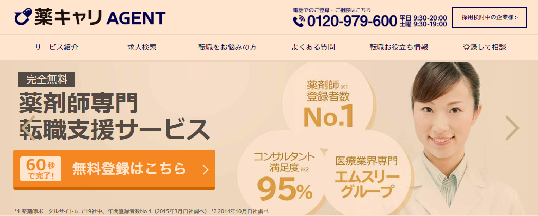 薬キャリAGENTは、医療関連ビジネスを展開するエムスリーキャリア株式会社が運営していて、年間2万人以上の薬剤師が登録している薬剤師登録者数No.1の薬剤師転職エージェントです。